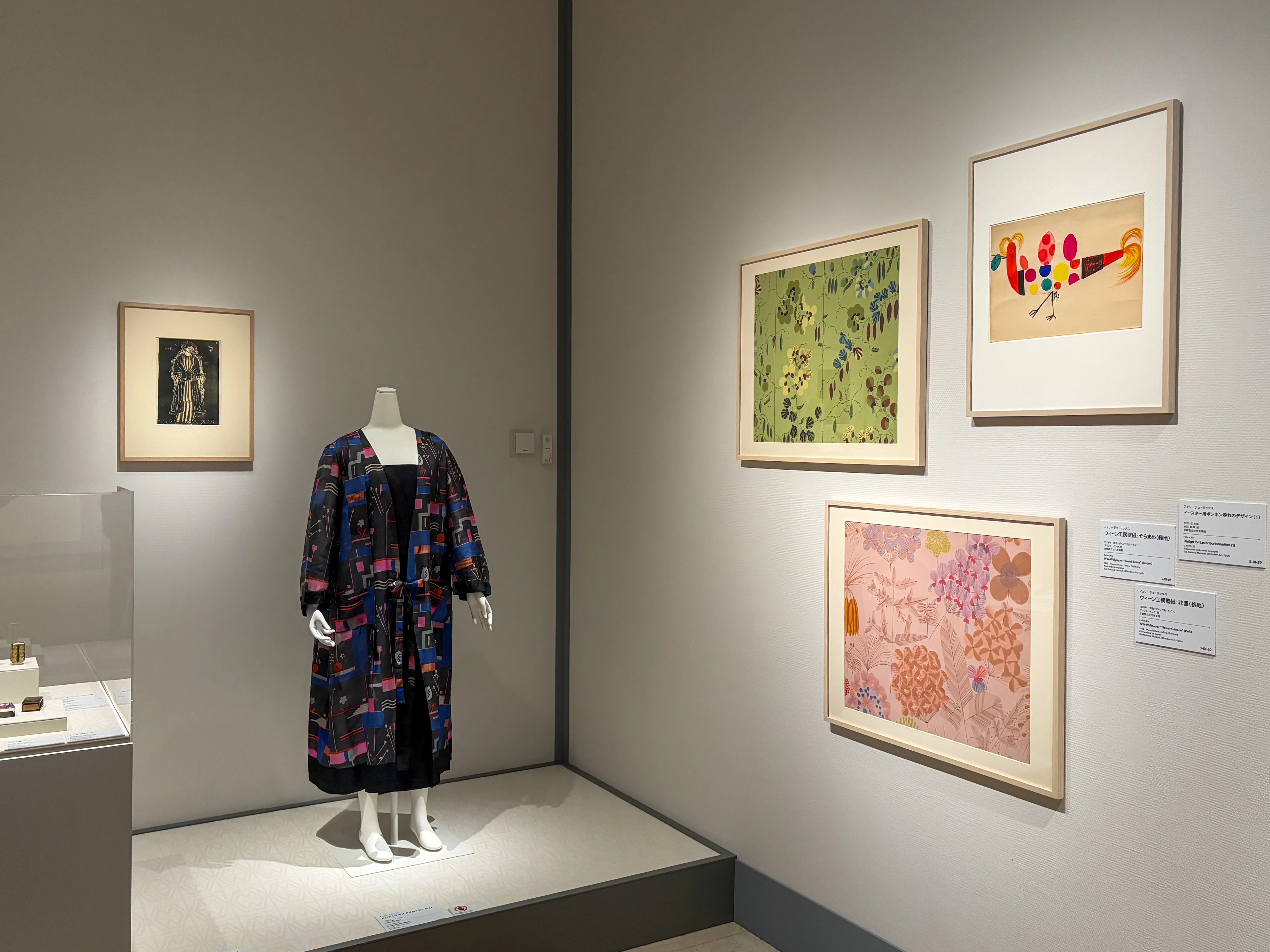 ウィーンからイギリスへと亡命した陶芸家ルーシー・リーや、ホフマンに師事し、ウィーンと京都というふたつの拠点で活躍したフェリーチェ・リックス(上野リチ)など、スタイルの継承と深化を表す作品がそこには並ぶ。