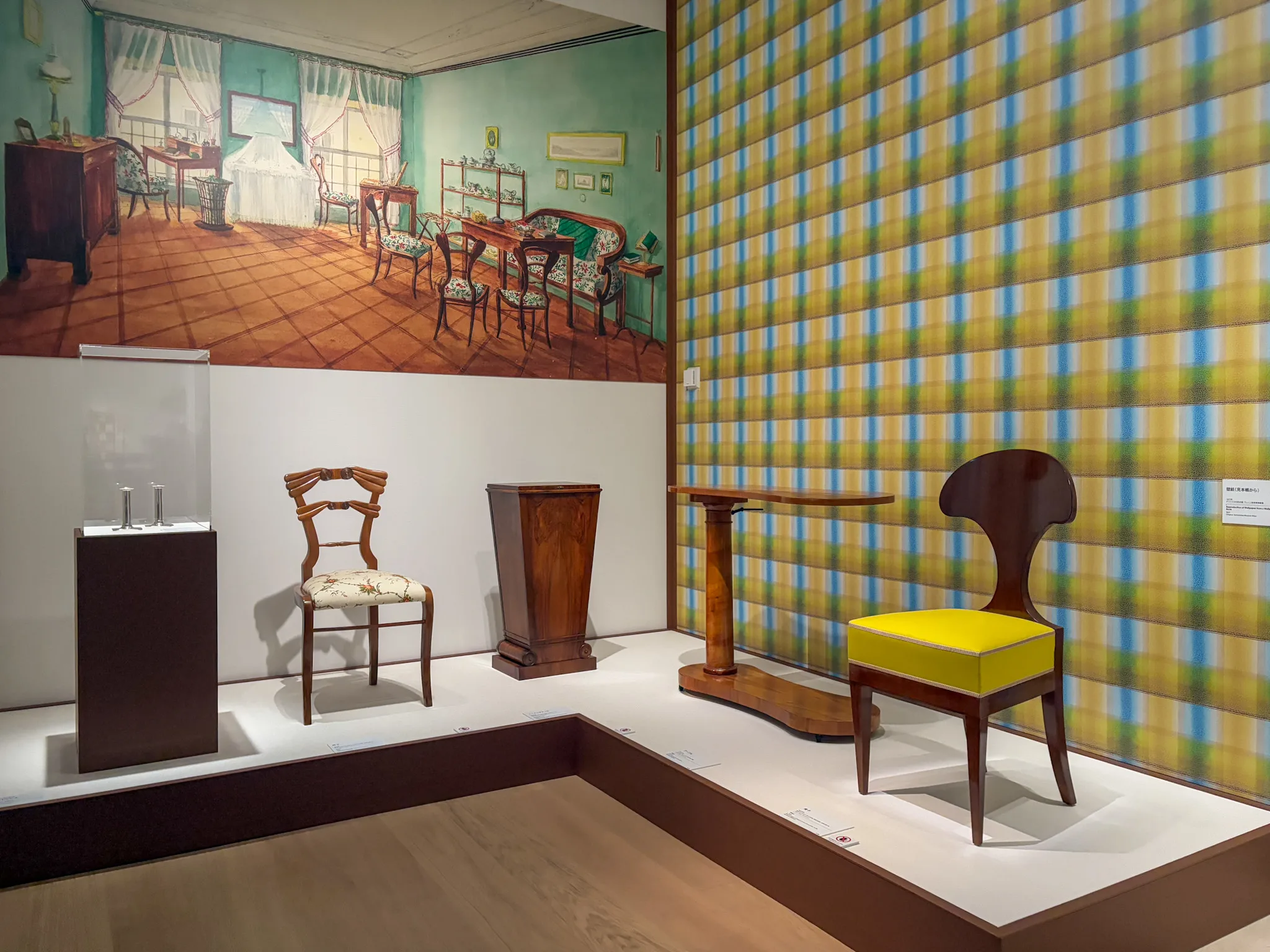 第1章「ビーダーマイヤー」では、同様式の工芸作品が素材ごとに紹介される。