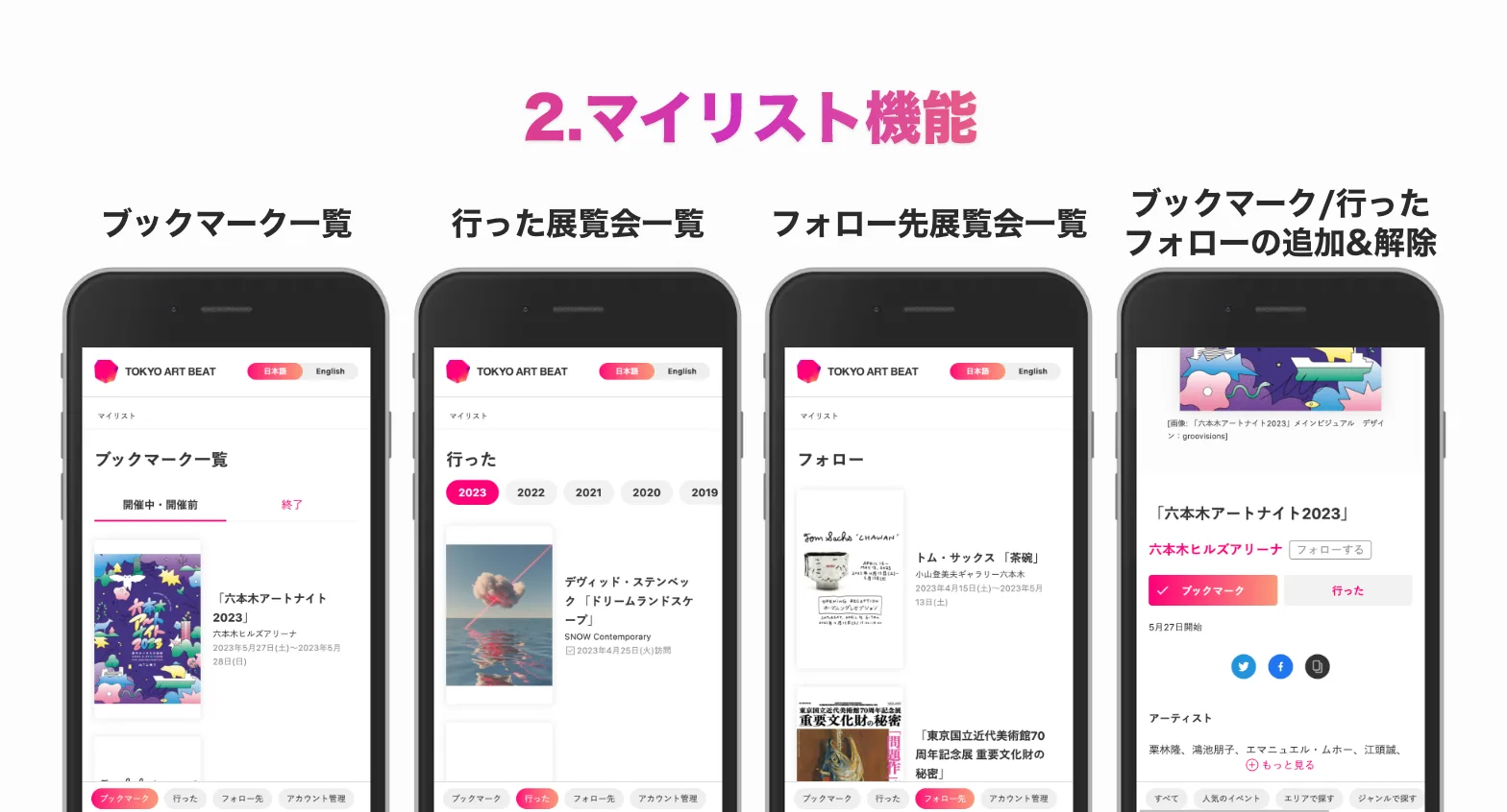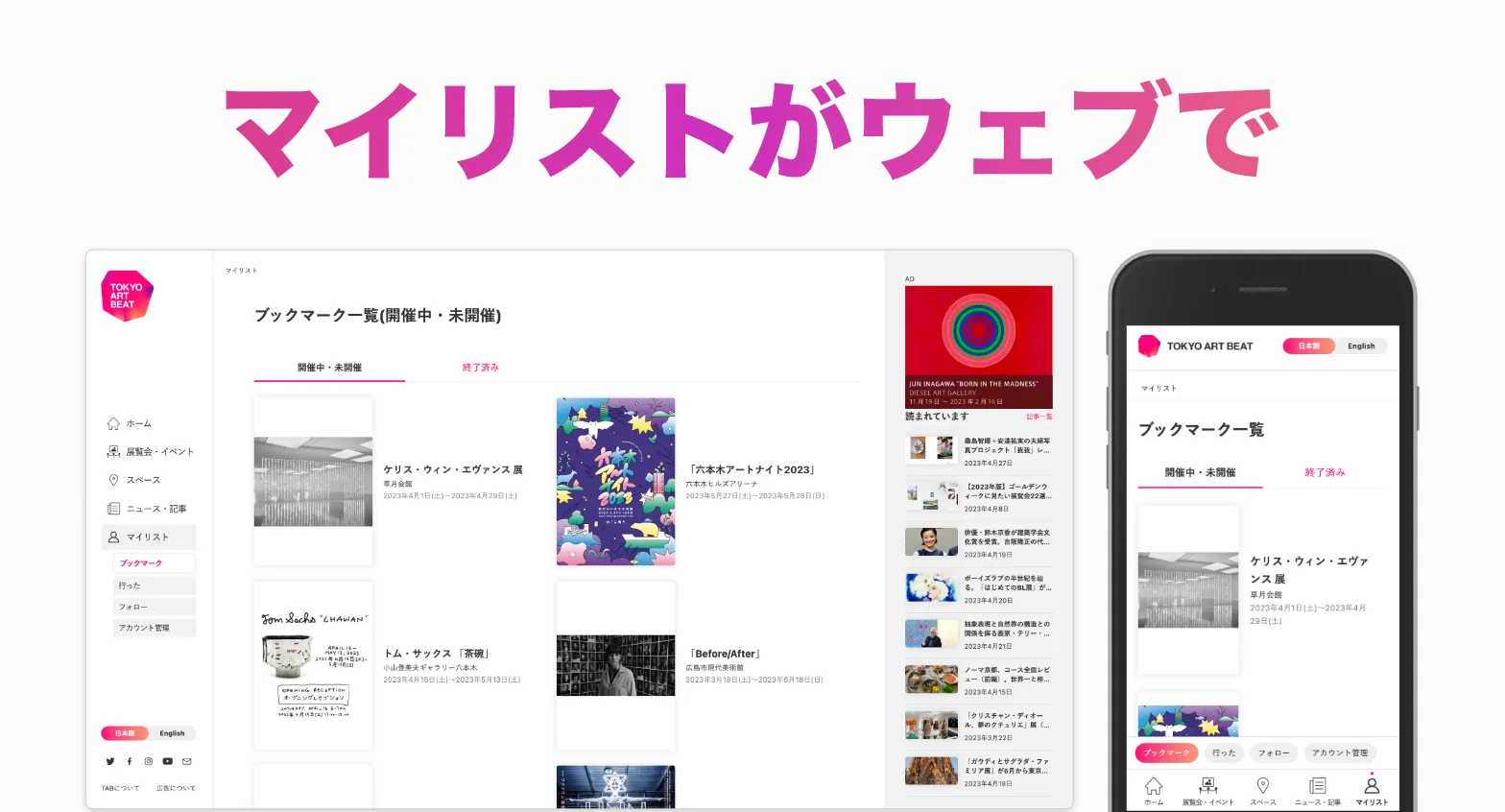 アプリログイン時のIDとパスワードで、ウェブ版Tokyo Art Beat上でもマイリスト機能を利用できるようになりました🎉