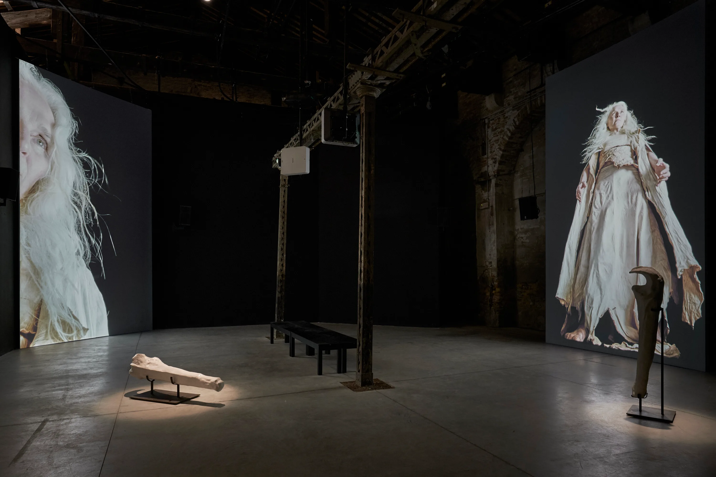 ジェシー・ジョーンズ(Jesse Jones) Tremble Tremble 2017 ヴィデオ・インスタレーション、彫刻、ライヴ・アクション 「ヴェネチア・ビエンナーレ」アイルランド館での展示風景 出演:オルウェン・フエレ(Olwen Fouéré)