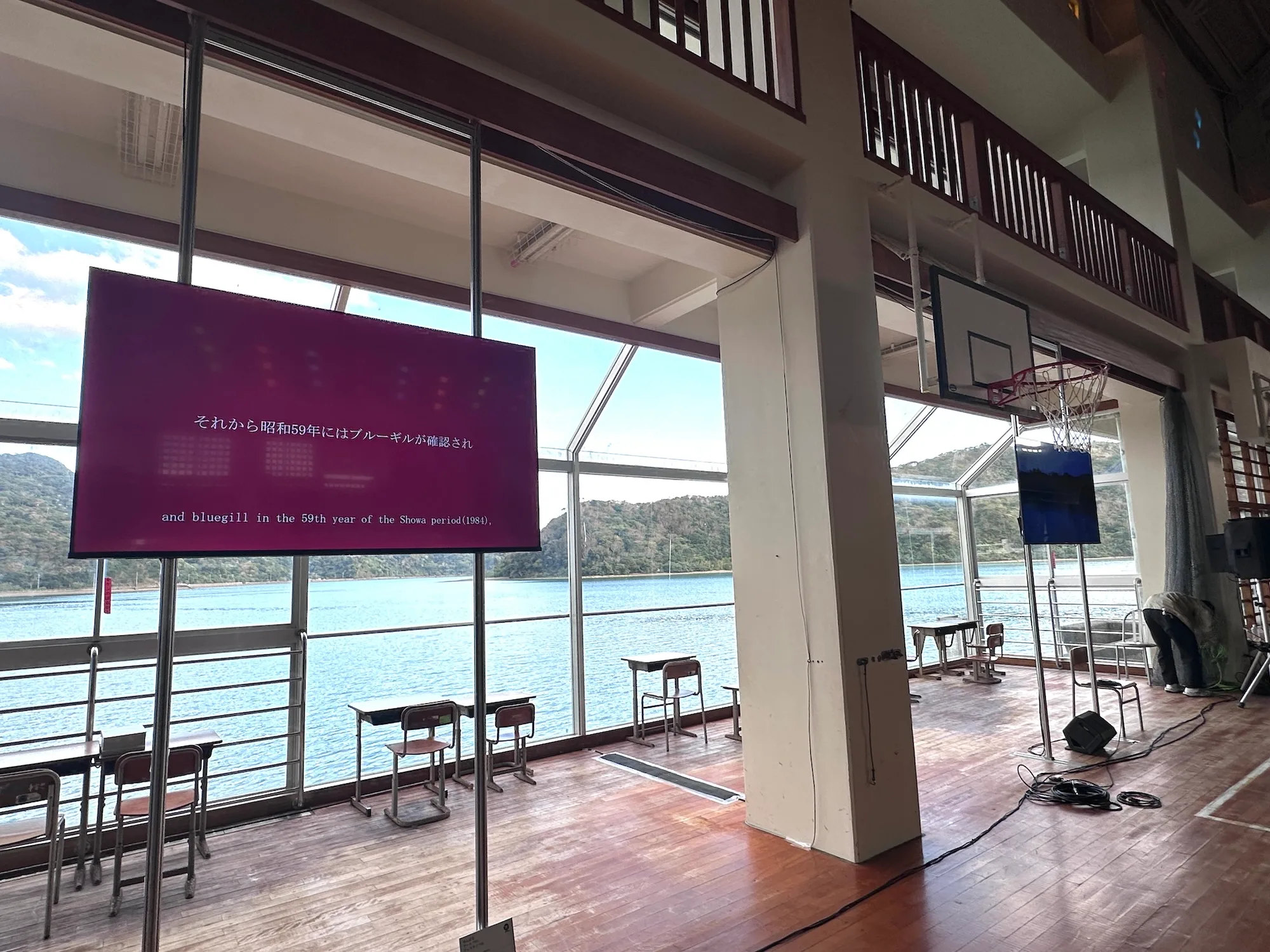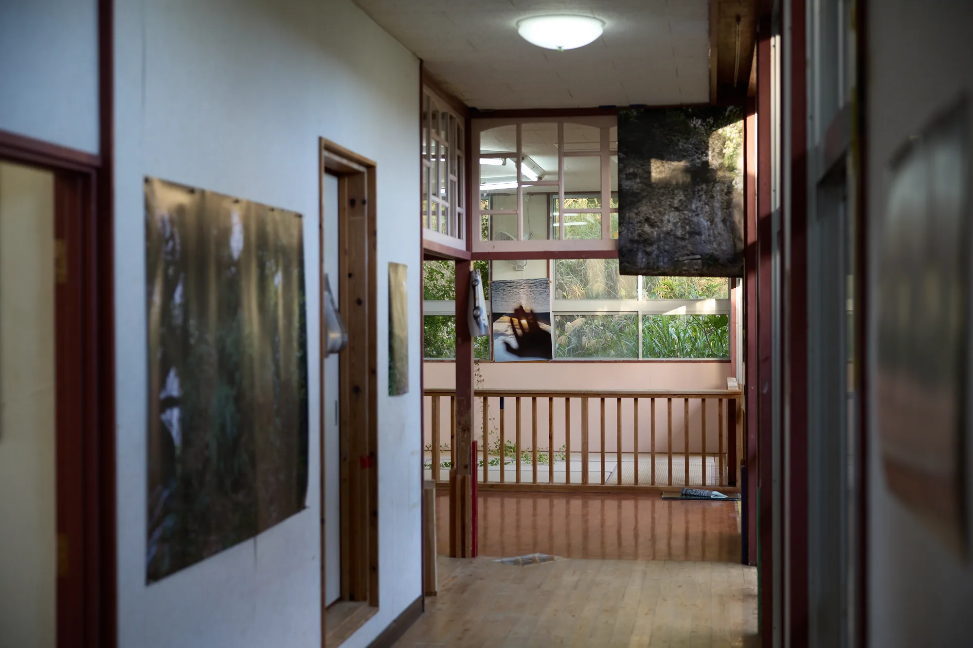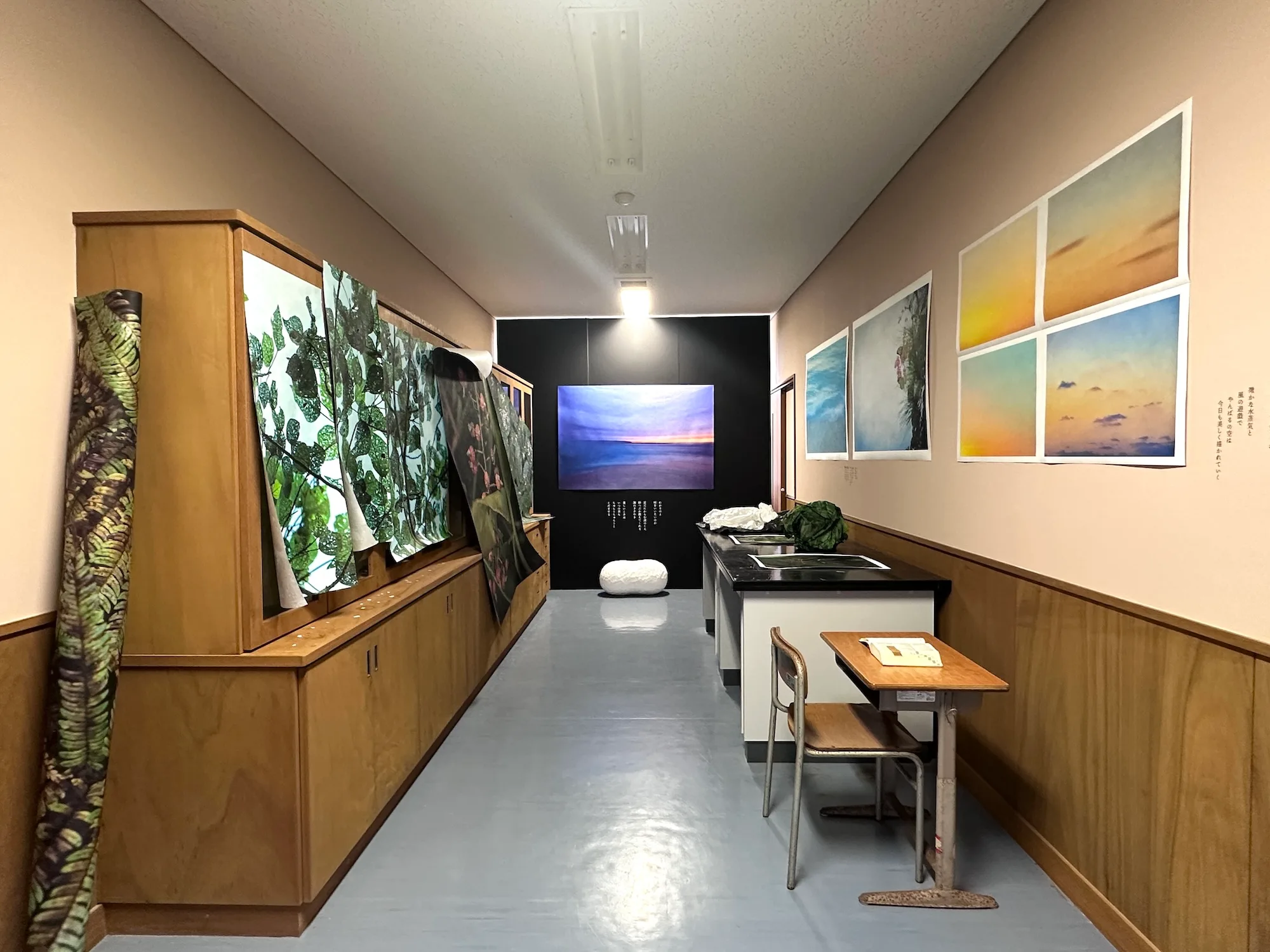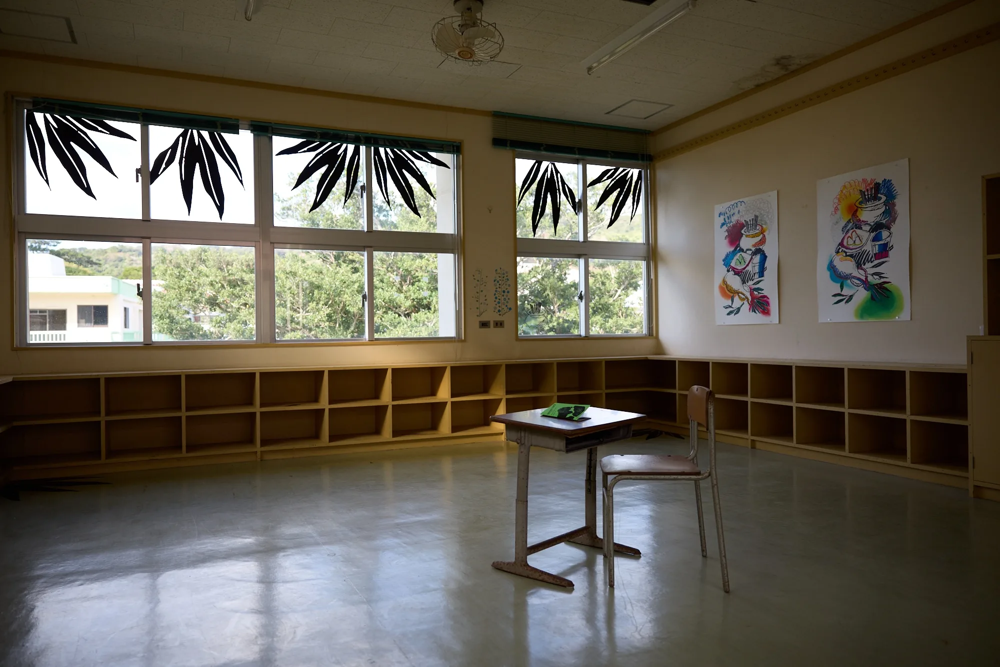 会場は、大宜味村の大宜味村立旧塩屋小学校、大宜味村喜如嘉保育所、やんばる酒造。国頭村のオクマ プライベートビーチ&リゾート、辺土名商店街、本部町の沖縄美ら海水族館(美ら海プラザ)、名護市のオリエンタルホテル 沖縄リゾート&スパ、カヌチャリゾート、名護市民会館前アグー像、サテライト会場の星野リゾート BEB5沖縄瀬良垣(恩納村)、ホテルアンテルーム那覇(那覇)の11ヶ所のため、レンタカーで沖縄の景色を楽しみながら巡るのがおすすめ。今回はそのなかから、メイン会場の大宜味村立旧塩屋小学校(大宜味ユーティリティーセンター)の作品を中心に紹介したい。