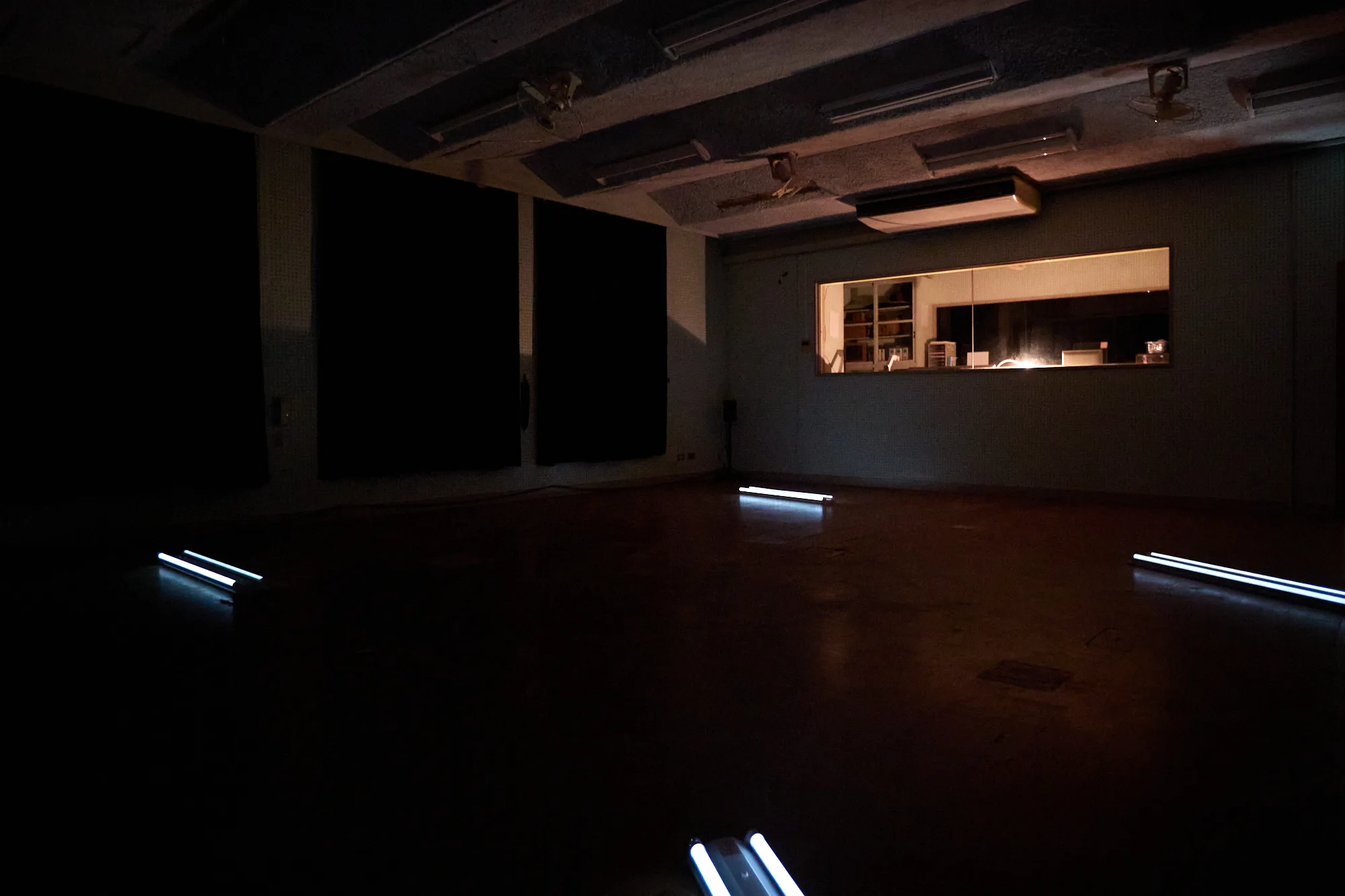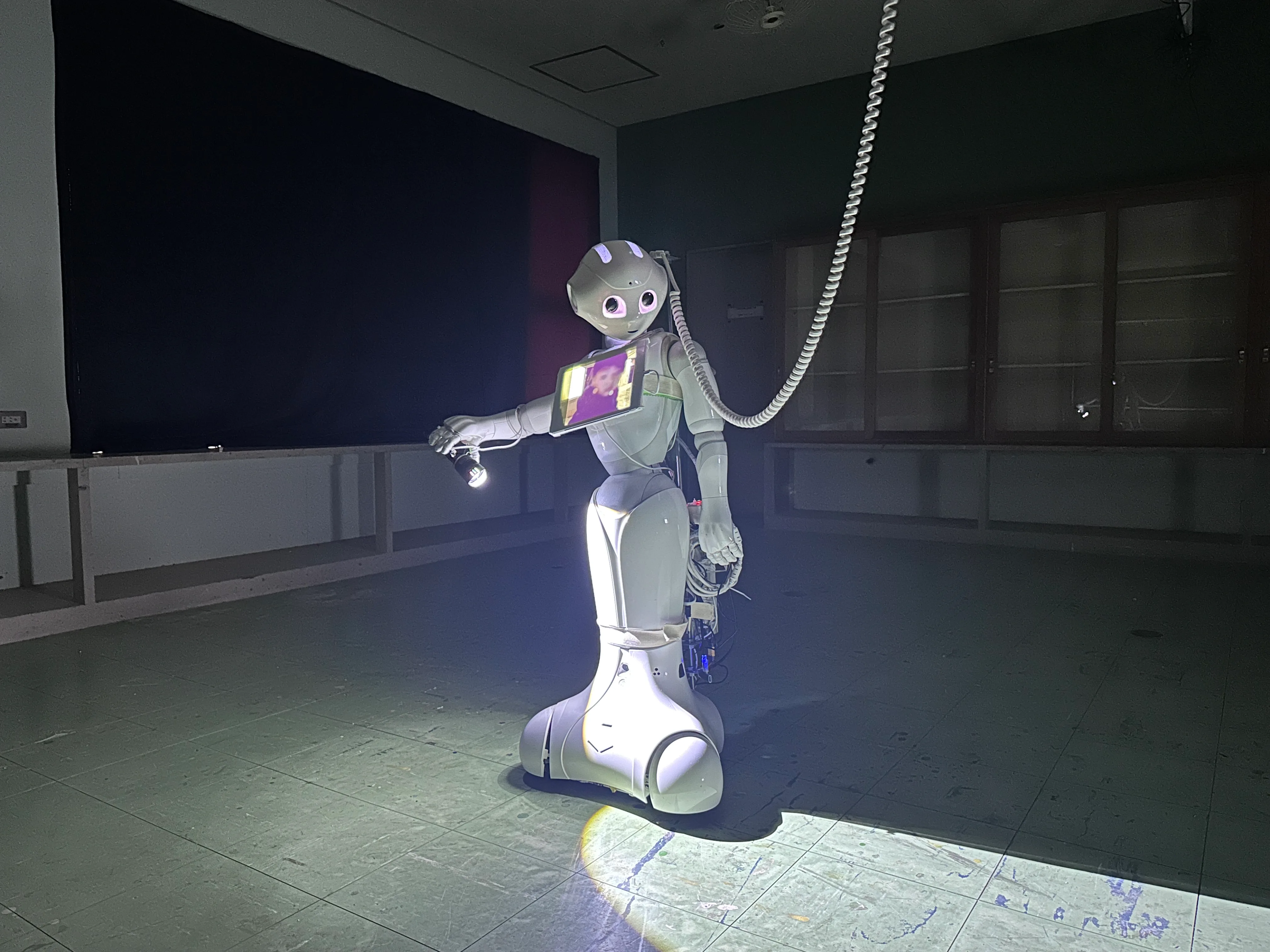 Chim↑Pom from Smappa!Groupは、沖縄において「穴」や「地下」という概念に基づく「奈落」をテーマに、ロボットがサーチライトで何かを探し続ける作品《穴番 / Who where what is のプロトタイプ》を展示。私たちが一度は見たことのあるロボットが改造され、中身はまったく違うものになっており、その挙動とあいまってどこか不気味さ、恐怖感を醸している。