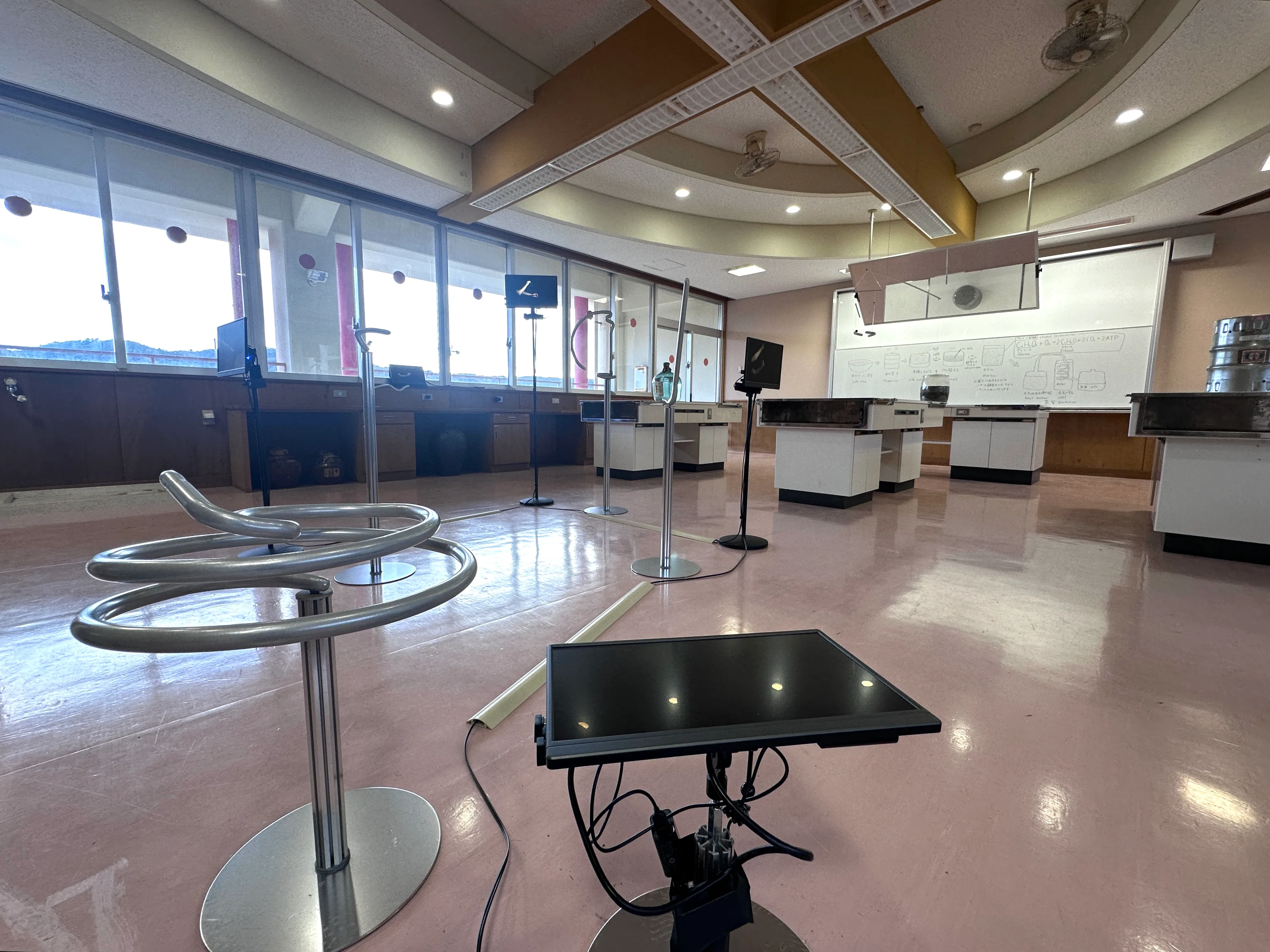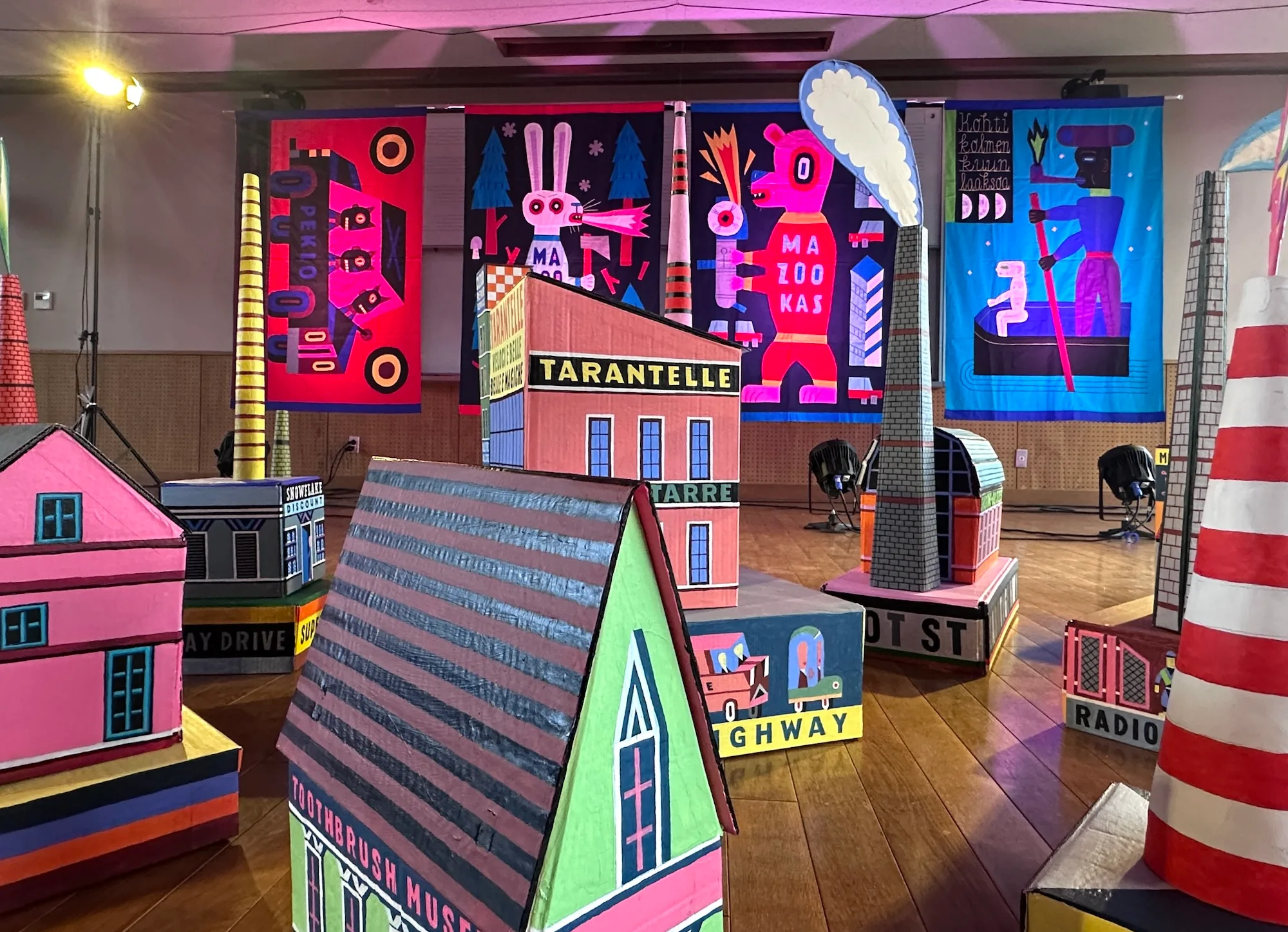 ヘニング・ヴァーゲンブレトは、日曜日の街の静けさから着想を得たインスタレーション作品《マズーカの日曜日》を教室全体に展開。プレス内覧会ではインスタレーションのBGMとなるような作家によるアコーディオン生演奏も特別に披露された。