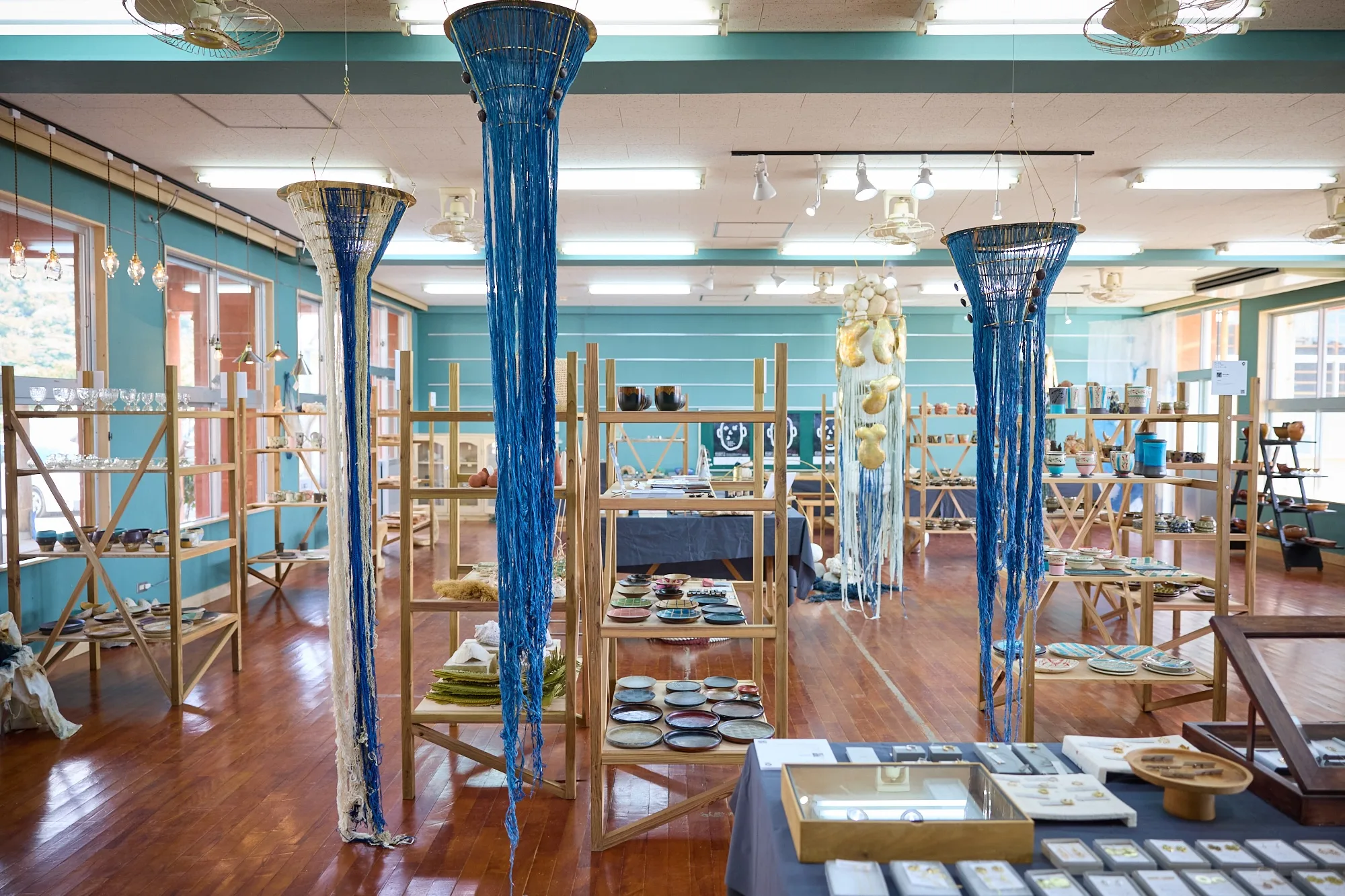 大宜味村立旧塩屋小学校は海に囲まれた気持ちの良い会場。同所で展示を行うエキシビション部門の出品作家は浅田政志、うしお、Chim↑Pom from Smappa!Group、津田道子、冨安由真、Leggy_、ロドリゲス=伊豆見・彩、渡辺志桜里ら21組。クラフト部門はacier+Grau、伊豆味ガラス工房うみのおと、オサム工房、神谷窯ら22組が顔を揃える。