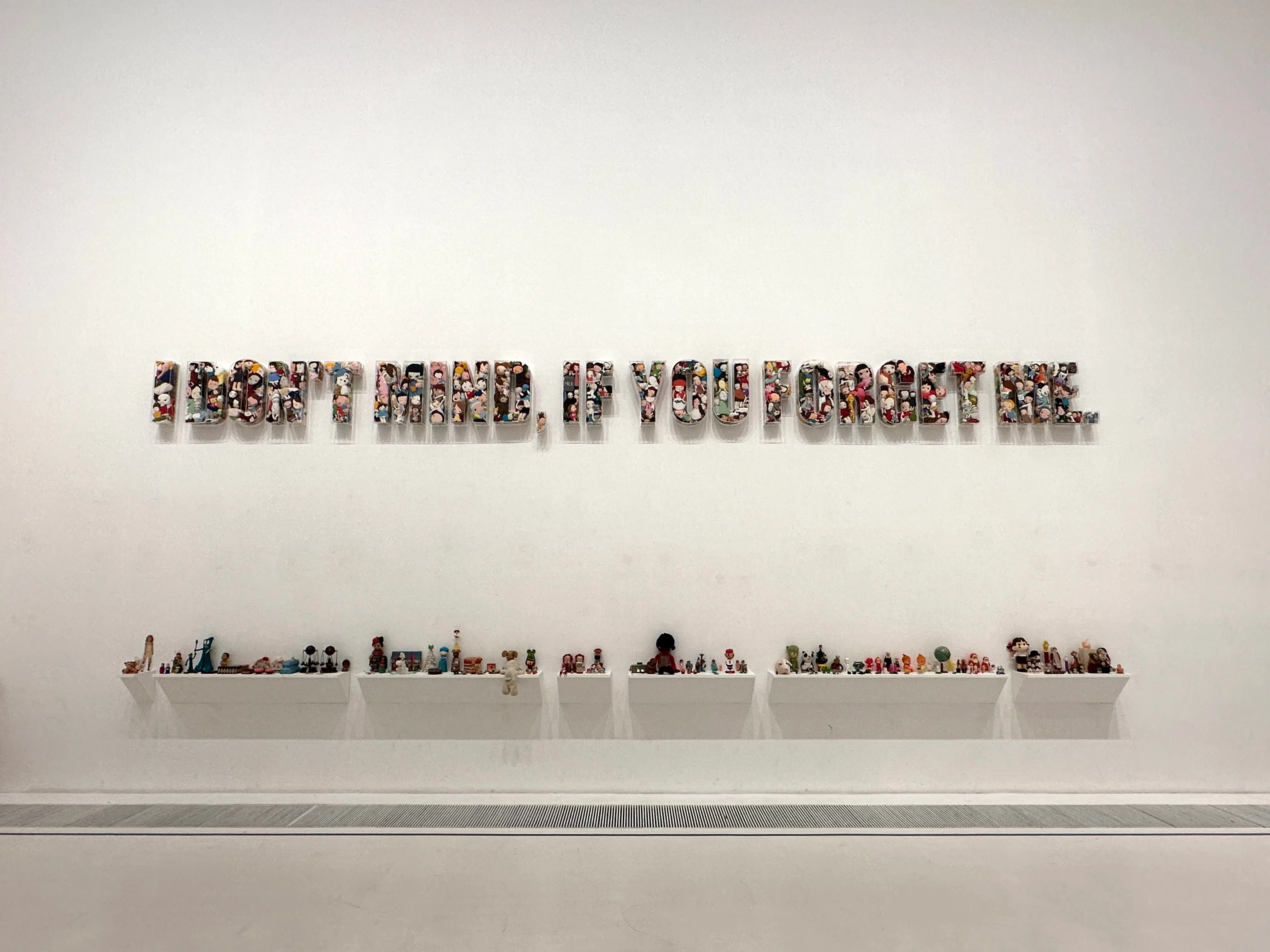 *──《I DON'T MIND, IF YOU FORGET ME. 》(2001)に収められたぬいぐるみは、当時あった奈良美智のファンサイト「HAPPY HOUR」に集う人々によって制作された。「HAPPY HOUR」には奈良も頻繁に訪れ、日記のコーナーを更新したり、掲示板に書き込んだりしていた。