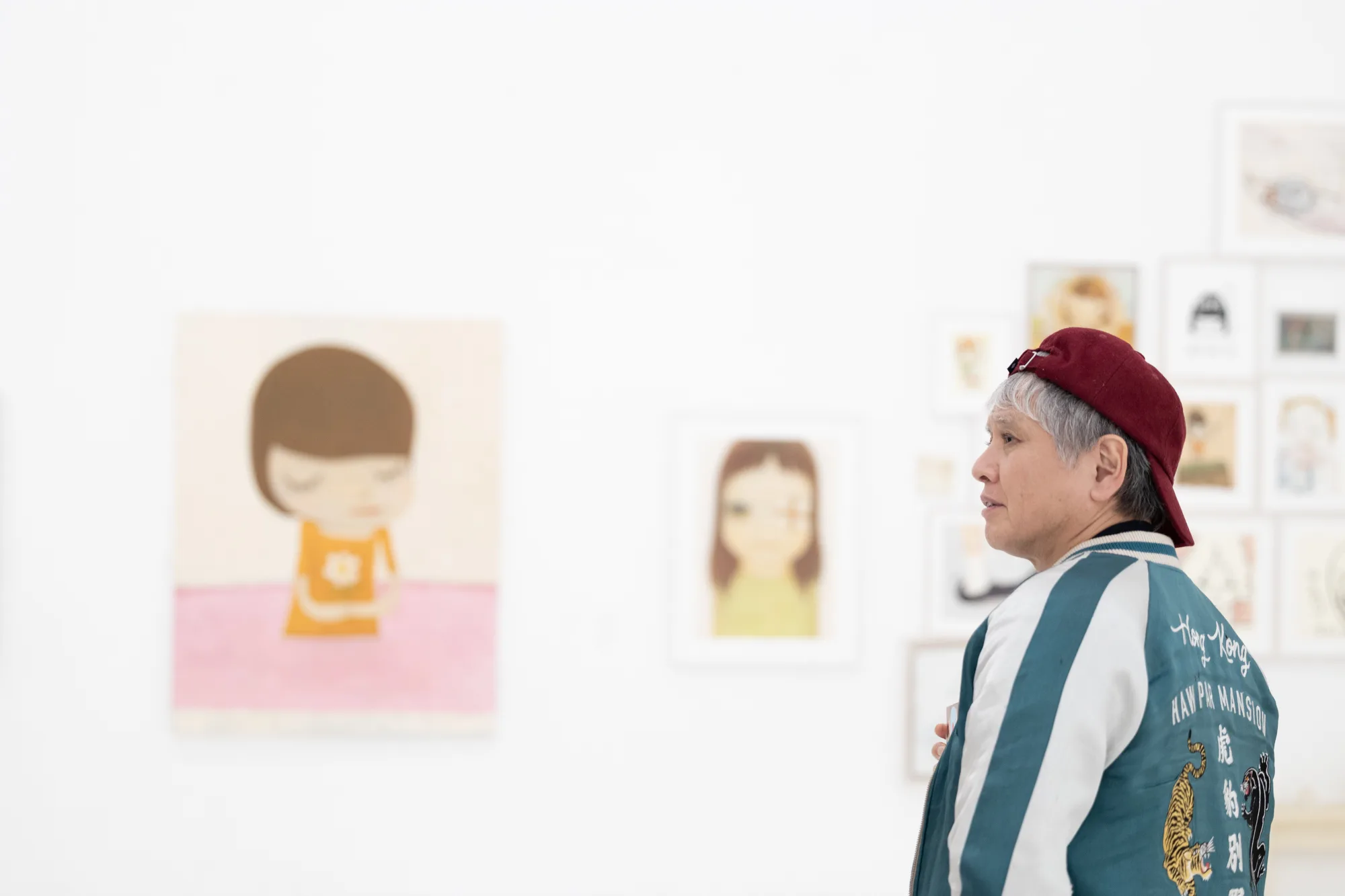 奈良美智。「奈良美智: The Beginning Place ここから」(青森県立美術館)の会場にて 撮影:小山田邦哉