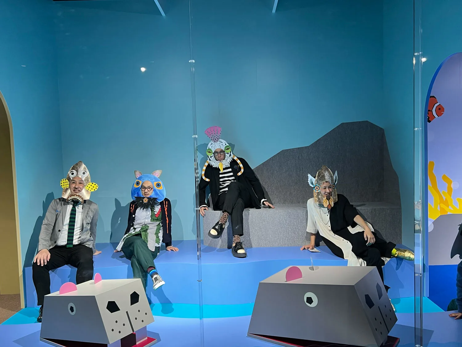 ワークショップ参加者が特別に楽しめるフォトスポットもある。水槽の中に入って、ニフレルの生きものと同じ状態を体験できる。tupera tuperaの中川敦子は、「美術館や動物園は、基本的に見る側と見られる側が決まっています。でも見ているあなたも面白いよということにも気づいてもらえる展示にしたかった。自分を見つめ直したり、自分と生き物の共通点を探したり、ここで体験を通した思いを持ち帰ってほしい」と話した。