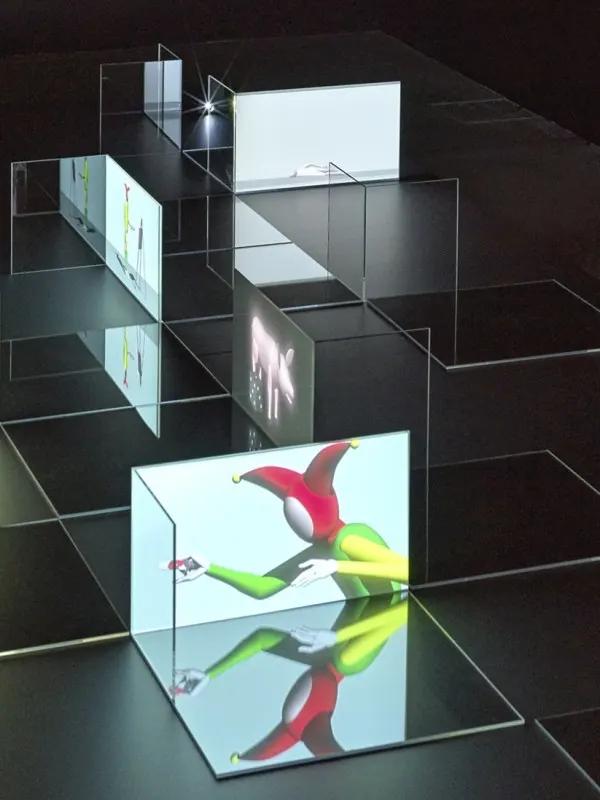 もちろんネッツハマーの代表的な映像作品も上映される。ネッツハマーは、デジタル・アニメーションの虚空間と奇妙なオブジェを掛け合わせた繊細な作品を描き出してきた。アニメーションに繰り返し登場する抽象的な〈人像〉は、顔を持たず、性別もさだかではない。この〈人像〉は、無防備な傷つきやすさと同時に、変容へと開かれた可塑性を感じさせる存在なのだ。